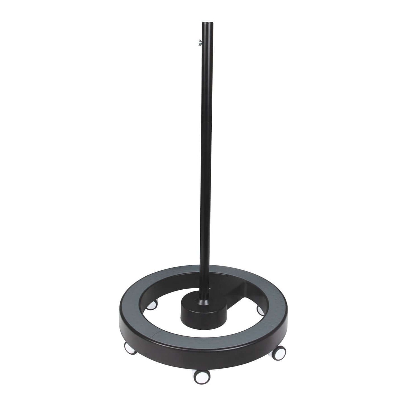 På de seks meget letløbende hjul på basen kan stativet endda let flyttes rundt på korthårede tæpper.
